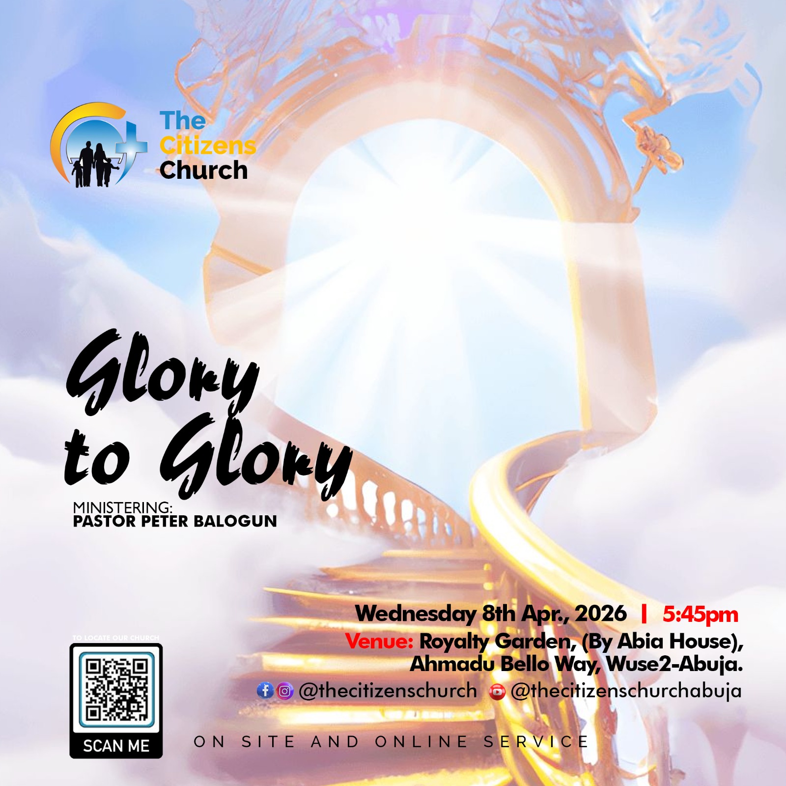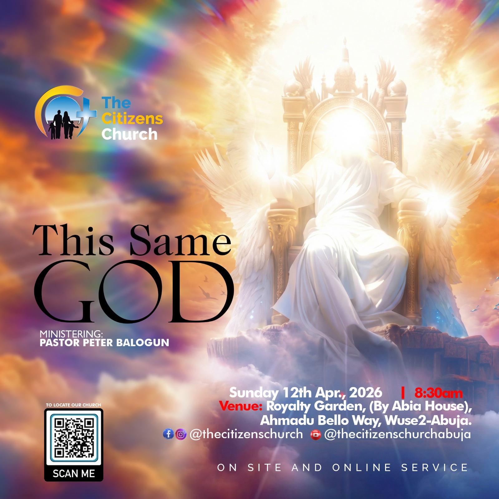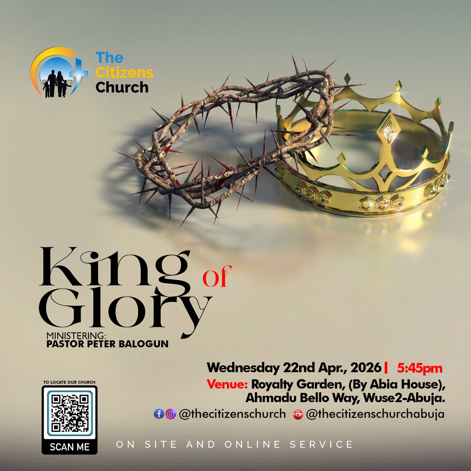 The Citizens Church, 2nd floor, Chicken Republic PLAZA, Opposite First Bank, Karu Road, Nyanya.